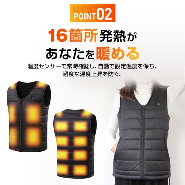 【レビュー特典!】 電熱ベスト ヒーターベスト 軽量 男女兼用 16エリア発熱 作業用 USB給電 3段階調温 水洗いOK 防寒 屋外作業 通勤通学 釣り バッテリー追加OK