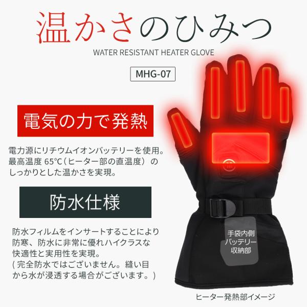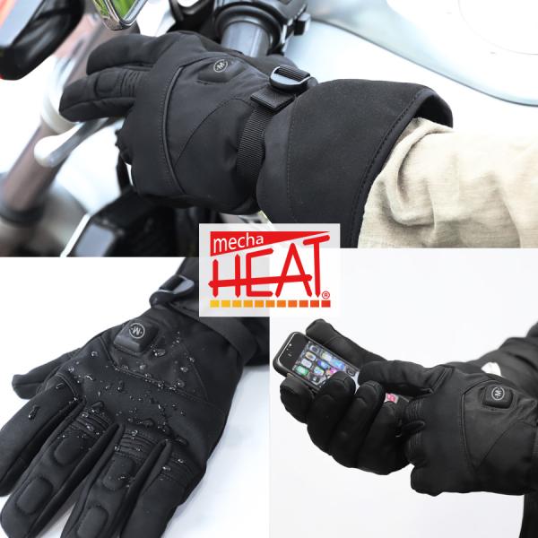 電熱グローブ バイク メンズ めちゃヒート 防水 防風 防寒 スマホ バッテリー 充電器付 ぽかぽか 暖かい