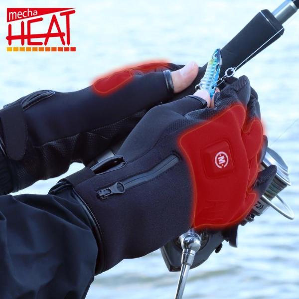 電熱グローブ 釣り 指出し メンズ めちゃヒート 防寒対策 防水 防風 防寒 バッテリー 充電器付