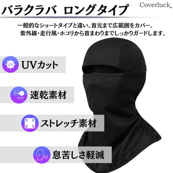 [Coverluck] バラクラバ バイク フェイスマスク uvカット夏用 ヘルメットインナー 薄手 フェイスカバー ネックガード ロング丈 日焼け防止 自転車 ランニング