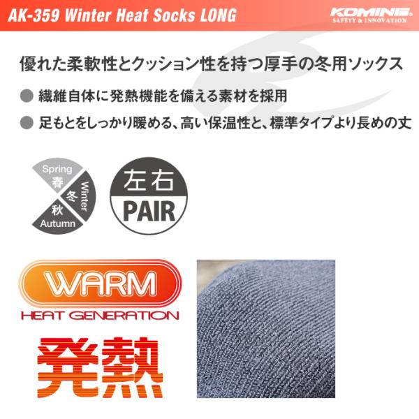 コミネ AK-359 ウインターヒートソックスロング KOMINE 09-359 秋冬 暖かい 靴下 バイクウェア