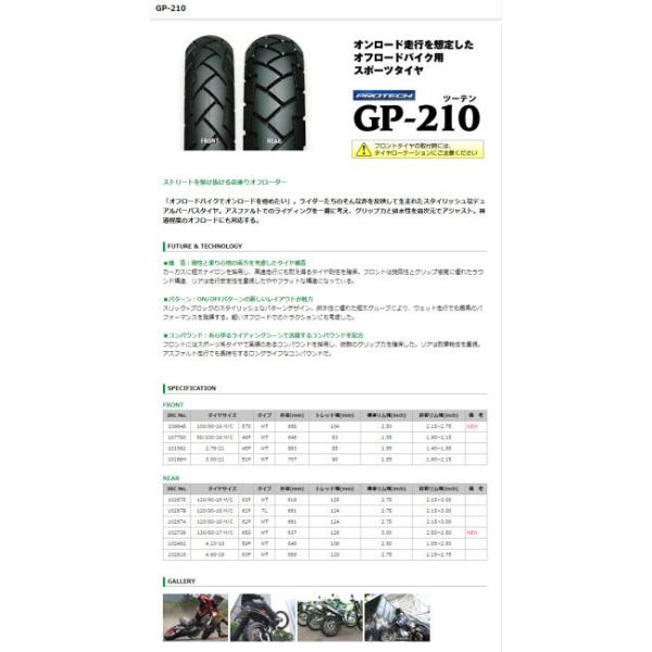 IRC アイアールシー PROTECH TRAIL WINNER GP-210 【120/80-18 M/C 62P WT】 プロテック トレイルウィナー ツーテン タイヤ オフロードタイヤ