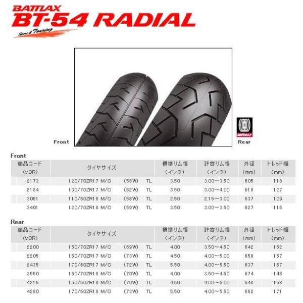 BRIDGESTONE ブリヂストン BATTLAX RADIAL BT-54 【140/70R18 67V TL】 バトラックス タイヤ オンロードタイヤ・ツーリング/ストリート オンロードタイヤ