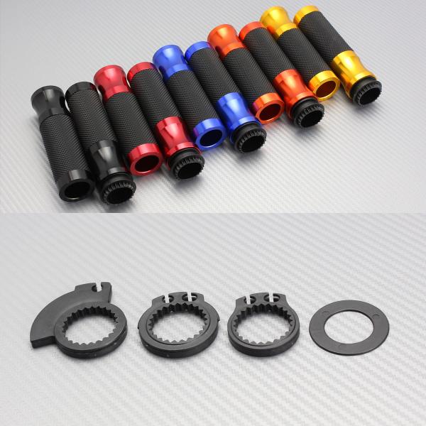 バイク グリップ 貫通タイプ カスタムグリップ アルミ&ラバー ハンドルパイプ径22mm用 左右セット S-241