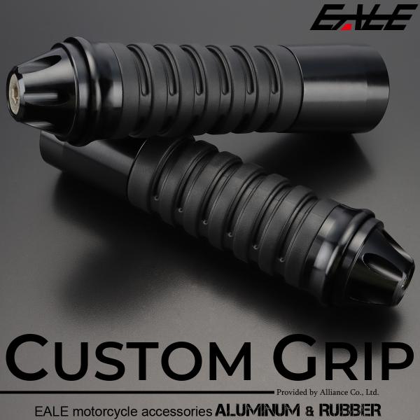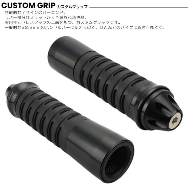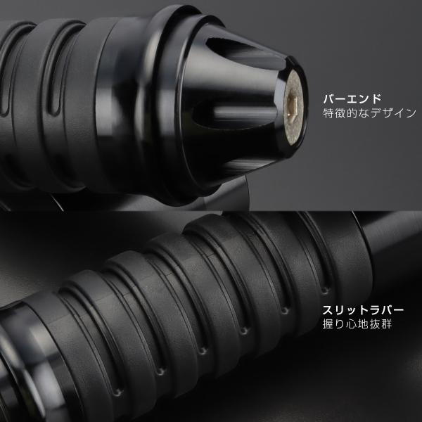 バイク グリップ ハンドル アルミ ラバー バーエンド付き 22.2mm用 ブラック 左右セット カスタム ドレスアップ S-248