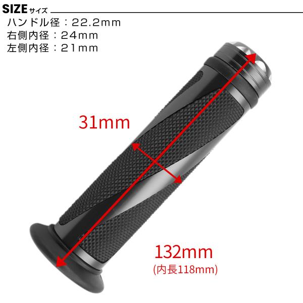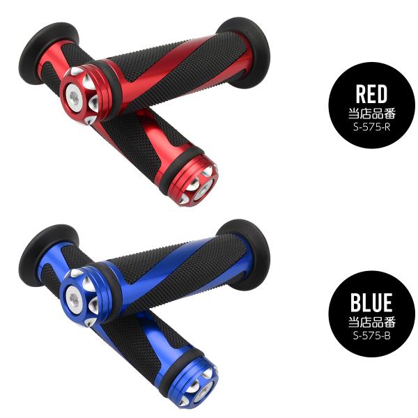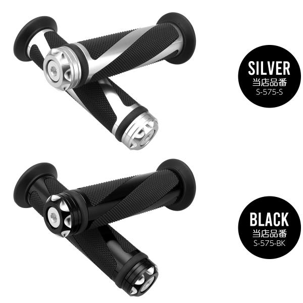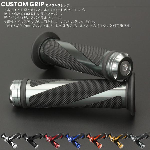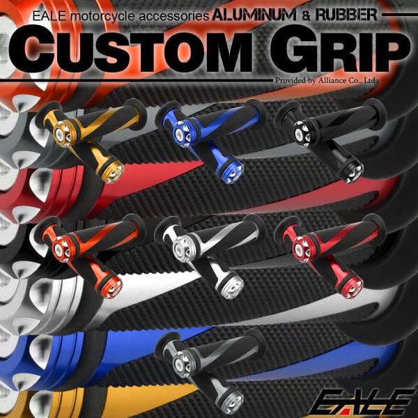 バイク グリップ ハンドル アルミ ラバー バーエンド付き 22.2mm用 左右セット カスタム ドレスアップ S-575