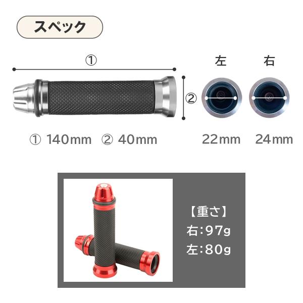 バイク グリップ 22 24 ハンドル 原付 スクーター ラバー アルミ おしゃれ カスタム 左右セット 汎用 カバー