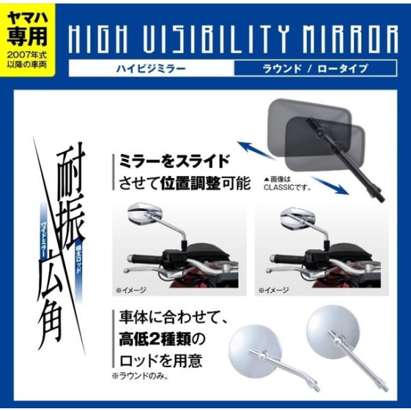 DAYTONA デイトナ ハイビジミラー ラウンド タイプ:ロー SR400 DRAG STAR400 STAR250 MAXAM YAMAHA ヤマハ ミラー ハンドル