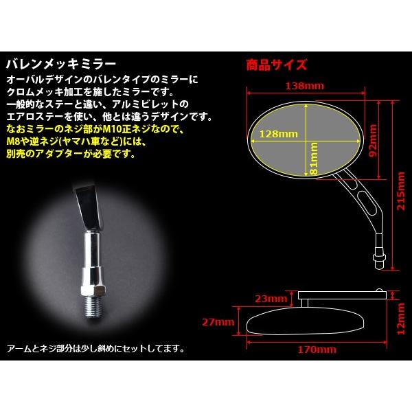 アウトレット オーバル型 バレン メッキ ミラー M10 正ネジ 左右セット クロム S-269