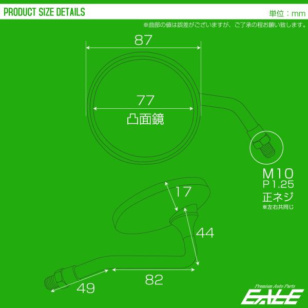 バイク ミラー 丸型 メッキ M10正ネジ 広角 凸面鏡 左右セット