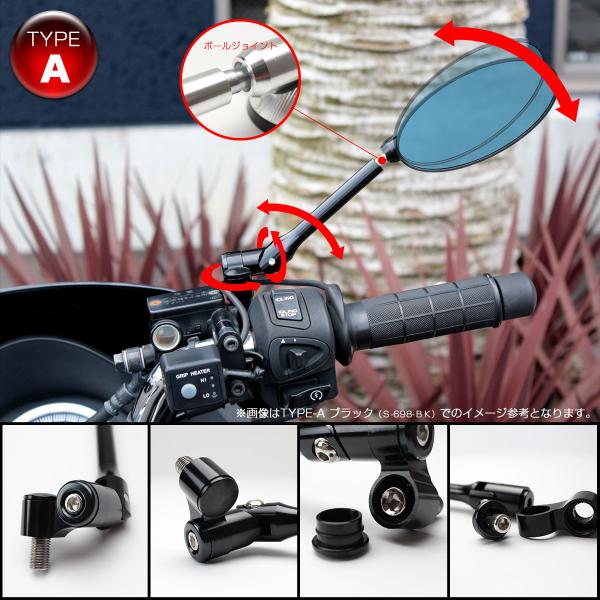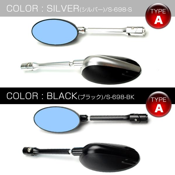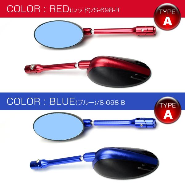 ブルーミラー オーバル型 アルミ製 バイク オートバイ スクーター ドレスアップに 汎用 左右セット S-698