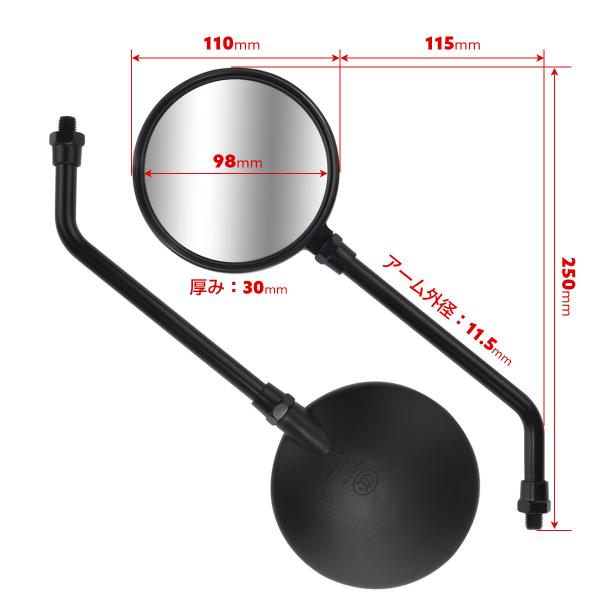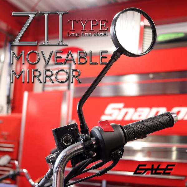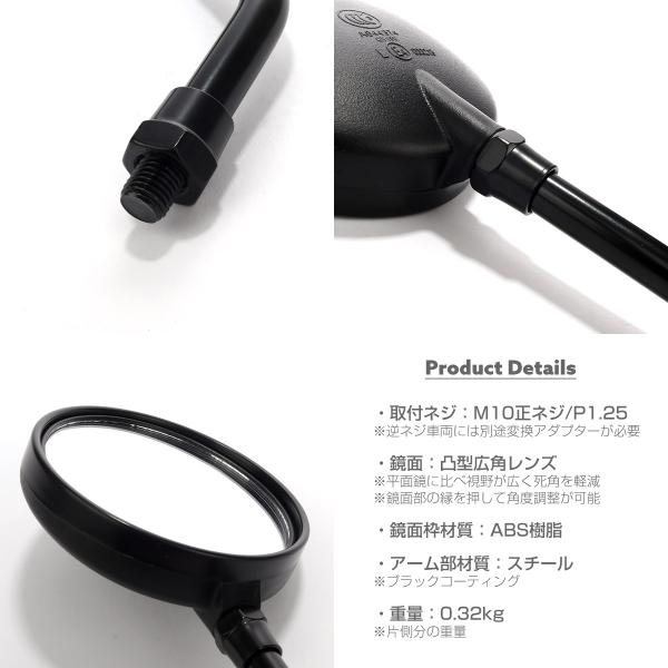 Z2タイプ ミラー ブラック ロングアーム M10 正ネジ 広角 凸面鏡 鏡面可動 左右セット S-1151