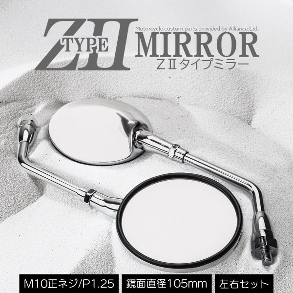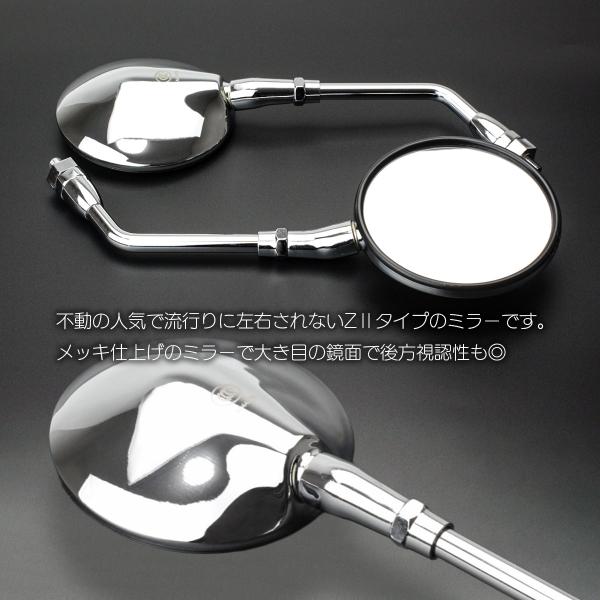 Z2タイプ ミラー M10 正ネジ ラウンド バイクミラー Z2ミラー クロムメッキ シルバー 左右セット S-505