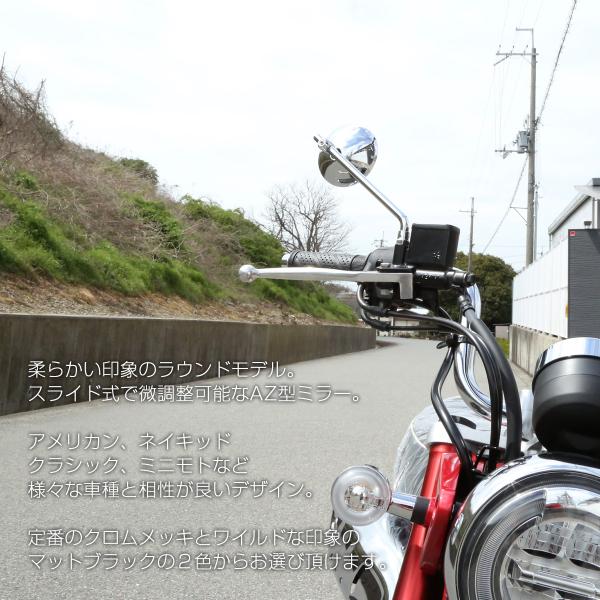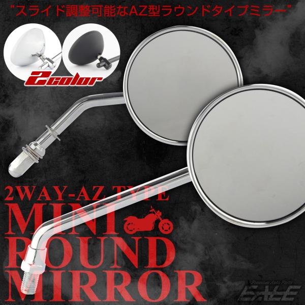 AZ型 オーバル ラウンドミラー 丸型 2WAY M10 M8 正ネジ 逆ネジ対応 スライド調整 汎用 左右セット S-920
