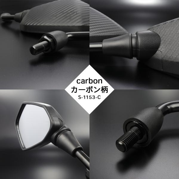 バイクミラー ブラック カーボン柄 ポリゴンミラー M10 正ネジ 広角 純正風 左右セット S-1153