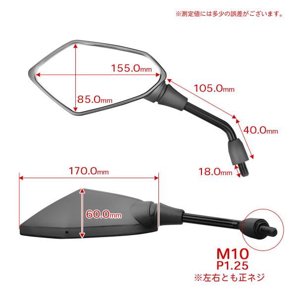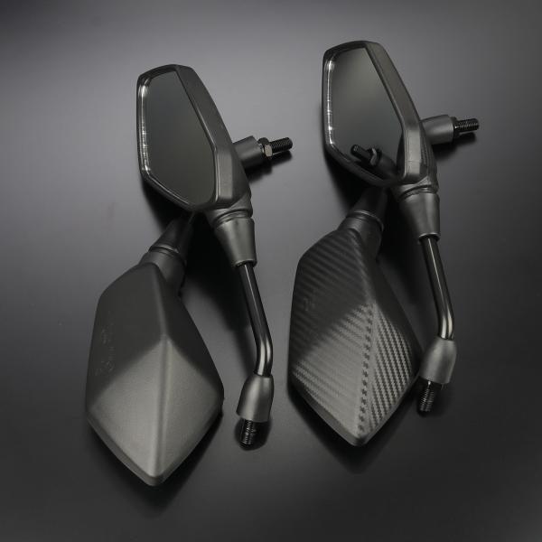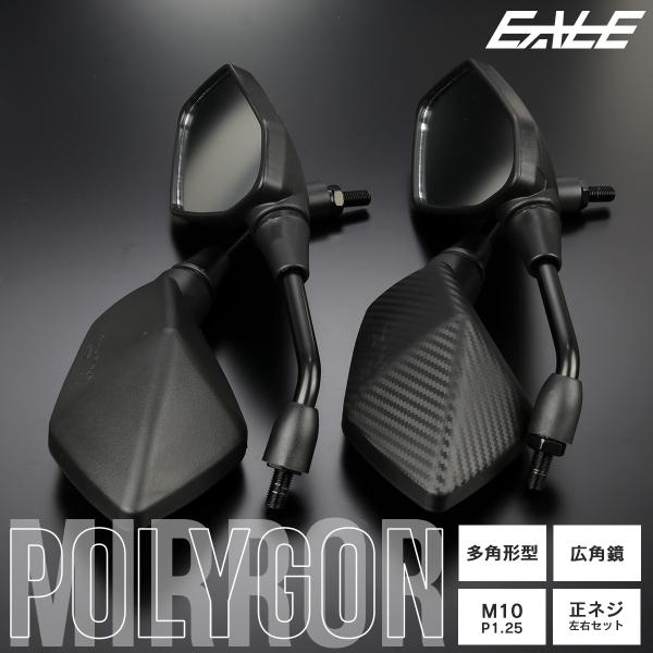バイクミラー ティアドロップタイプ ポリゴン M10 正ネジ 広角鏡 多角形 ブラック カーボン柄 左右セット 汎用 S-1153