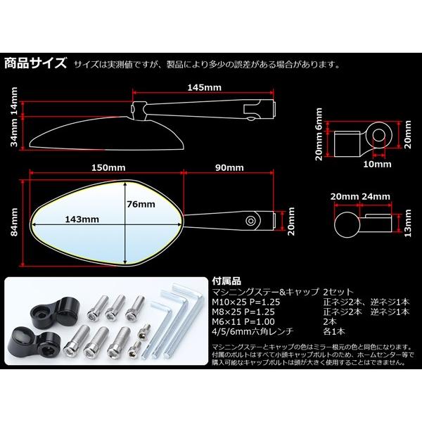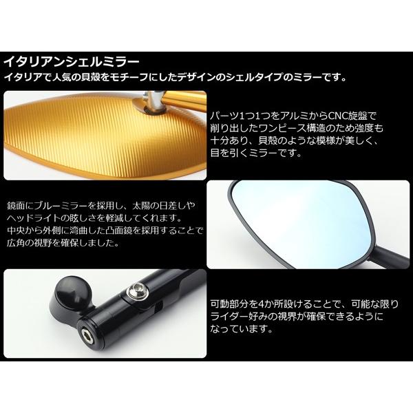 イタリアン シェル ミラー ポリゴン型 ブルーミラー 凸鏡面 M10 M8 正逆ネジ対応 アルミ製 左右セット S-271
