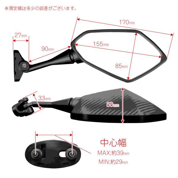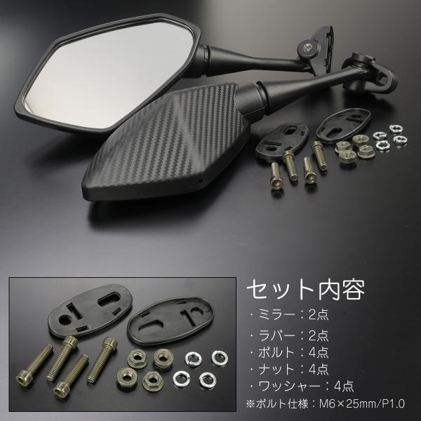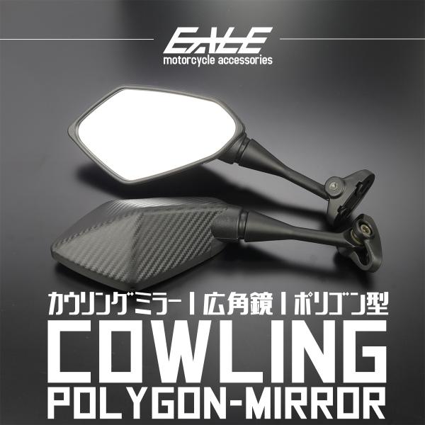 カウルミラー カウリングミラー ポリゴン 広角鏡 多角形 ブラック カーボン柄 左右セット S-1154