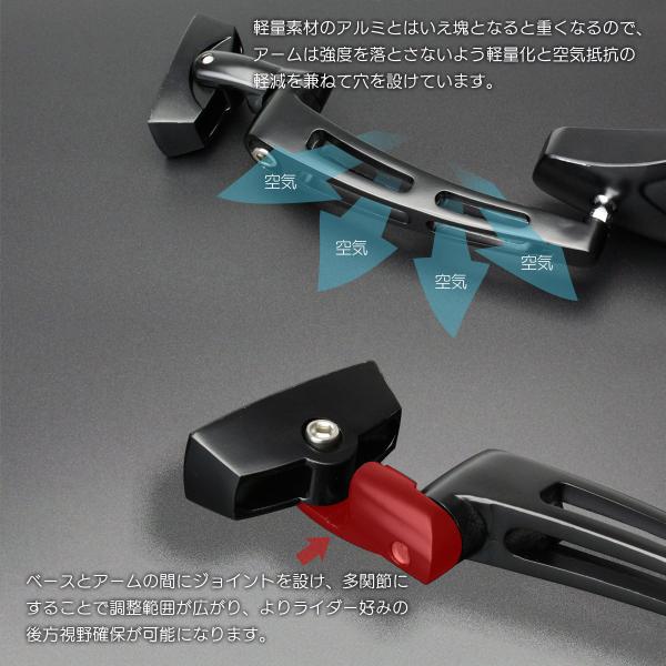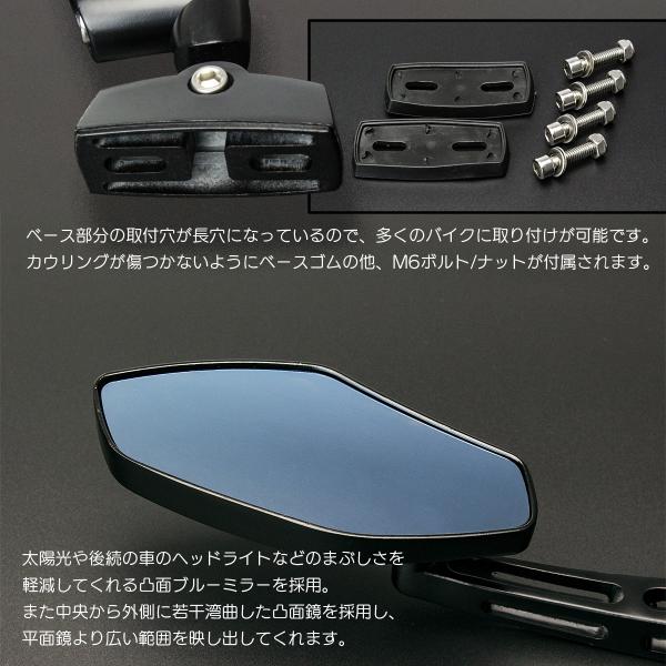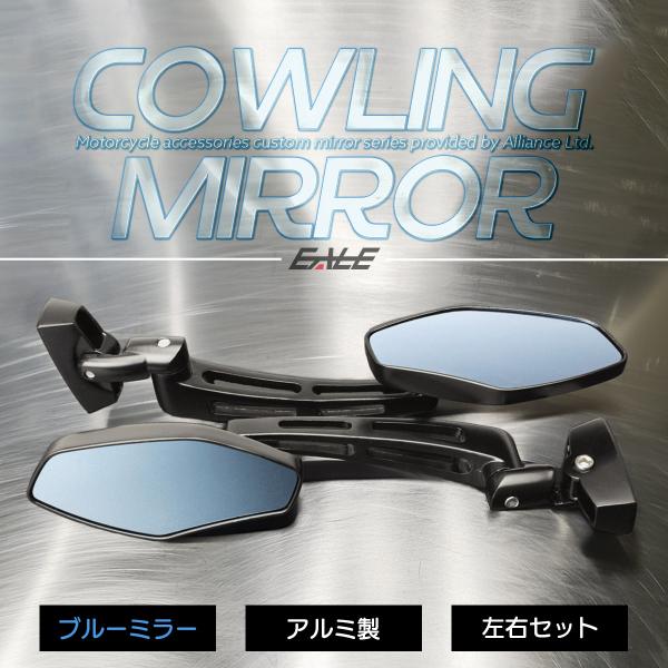 ブルーミラー カウリングミラー ポリゴン アルミ カウルミラー 凸面鏡 左右セット ブラック カウル付きバイク用 S-507