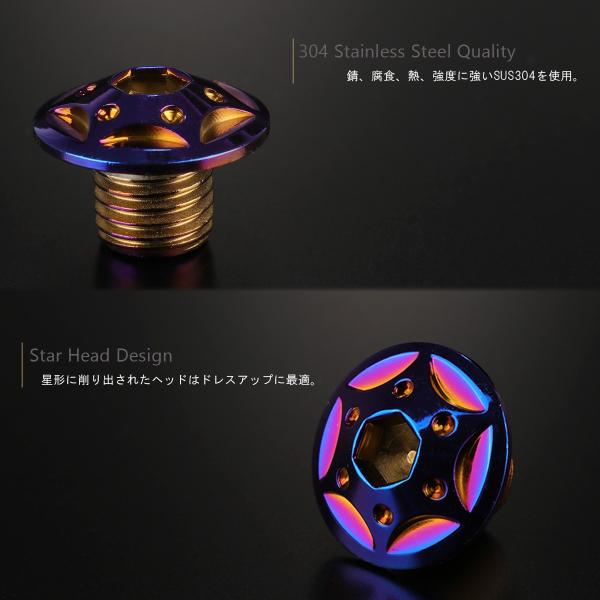 ミラーホールカバー キャップ スターホールヘッド 2個セット M10×10mm 正ネジ P1.25 SUS304 ステンレス製 焼チタン TH0123
