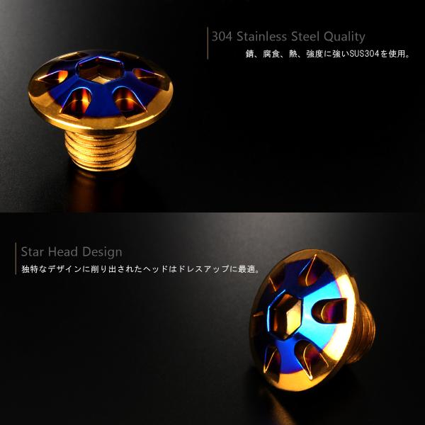 ミラーホールカバー キャップ デザインヘッド 2個セット M10×10mm 正ネジ P1.25 SUS304 ステンレス製 ゴールド&ブルー TH0128