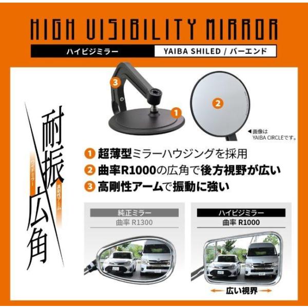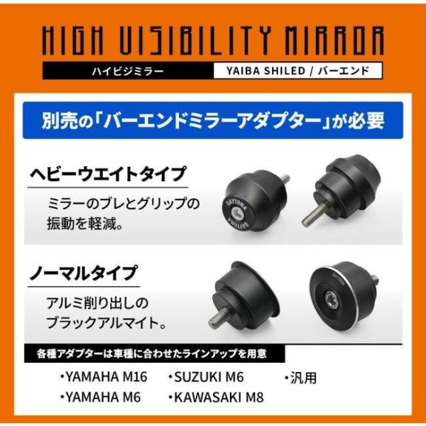 DAYTONA デイトナ ハイビジミラー バーエンドミラー スリムタイプ YAIBA SHIELD タイプ:ブラック ハンドル