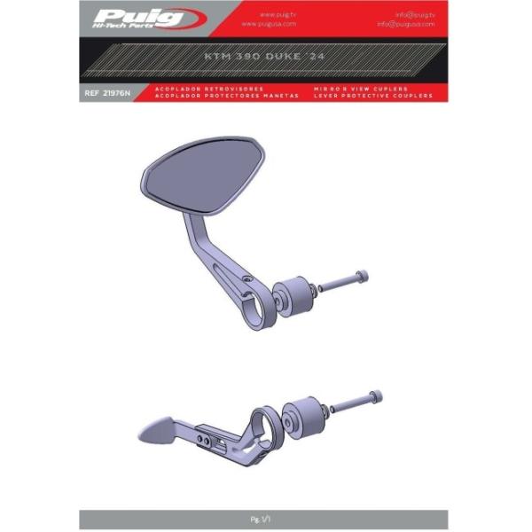 Puig プーチ バーエンドミラー、レバープロテクター兼用アダプター(Rearview aud Lever Protector Adaptor to Bar Ends) SVARTPILEN 125 401 VITPILEN DUKE 390