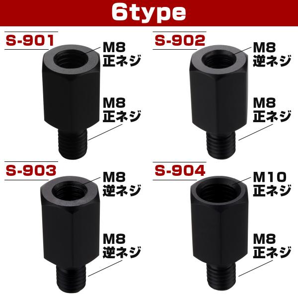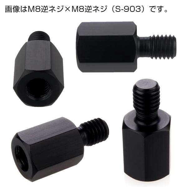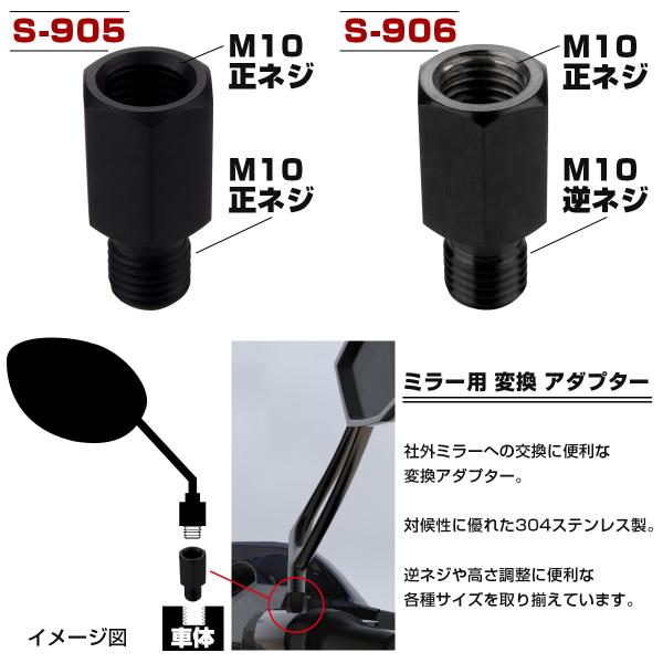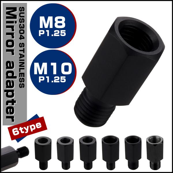 ミラー 変換アダプター M8 M10 P1.25 正ネジ 逆ネジ 変換プラグ ステンレス ブラック S-901-906