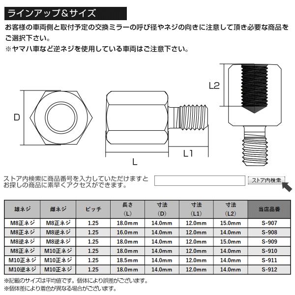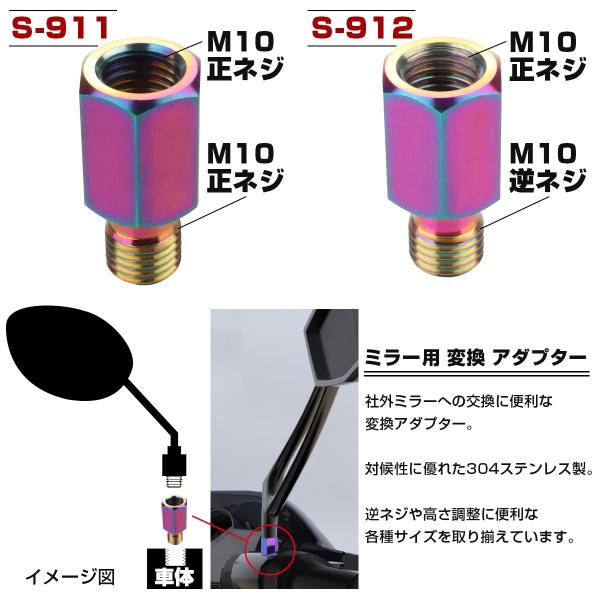 ミラー 変換アダプター M8 M10 P1.25 正ネジ 逆ネジ 変換プラグ SUS304 レインボー S-907-912