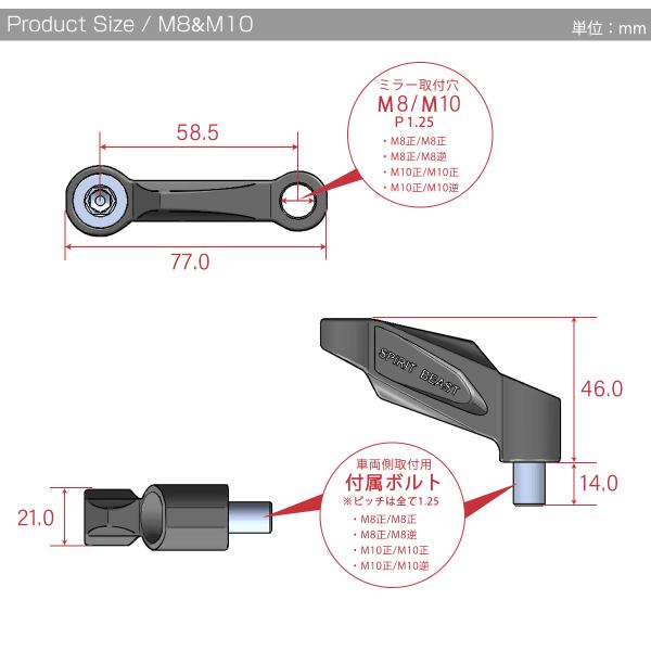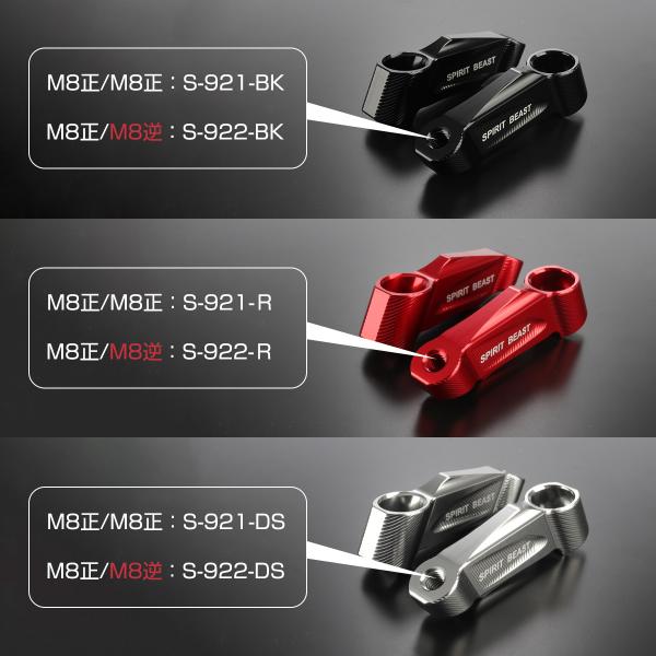 ミラー延長アダプター ステー M8 M10 正ネジ 逆ネジ T6アルミ 3色 汎用 2個セット S-921-924
