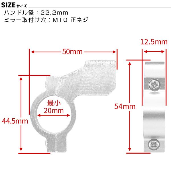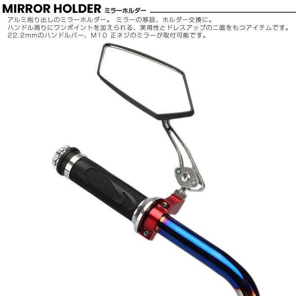 アルミ ミラーホルダー M10 正ネジ 22.2mm ハンドル S-295
