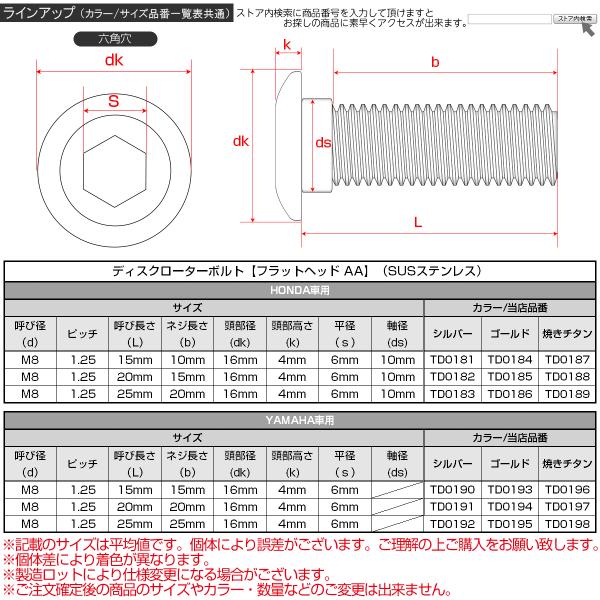 ブレーキ ディスクローター ボルト ヤマハ用 M8×20mm P=1.25 ステンレス フラットヘッド AA 焼きチタンカラー TD0197