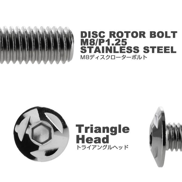 SUSステンレス製 M8×25mm P1.25 ブレーキ ディスク ローター ボルト トライアングルヘッド ヤマハ車用 シルバー TD0238