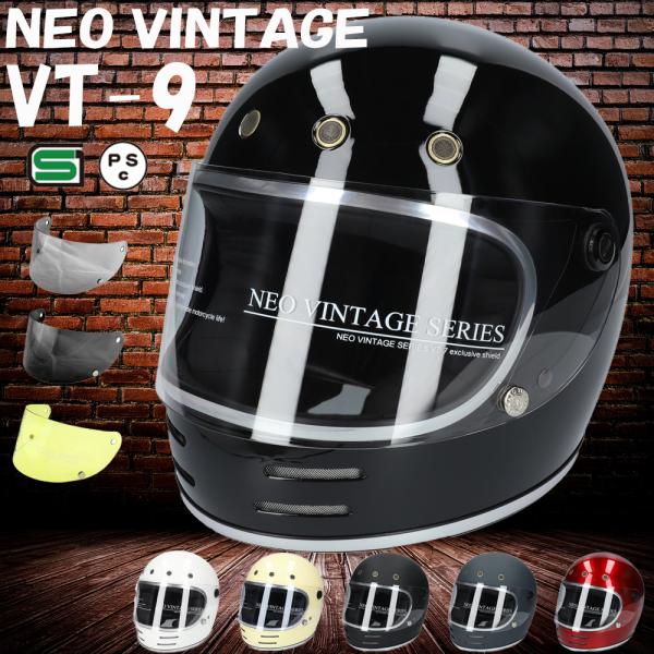 バイク ヘルメット フルフェイス シールドセット M Lサイズ 57〜60cm未満 全排気量対応 バイク用 SG規格品 単色 ステッカー付き 旧車會 族ヘル VT-9
