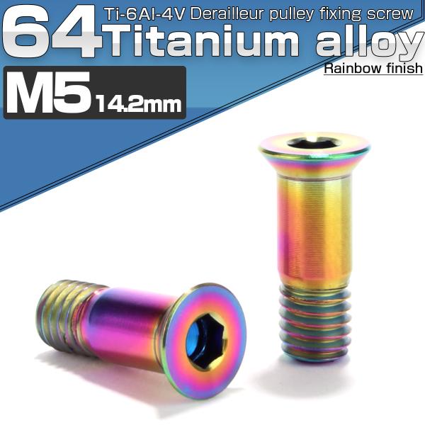 ディレイラープーリー M5×14.2mm チタン ボルト レインボー 自転車 2本セット JA468