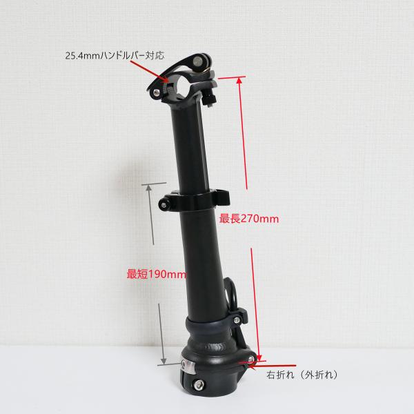 「HP1929S」 ダホン用 伸縮ハンドルポスト 短型 外折れ 右折れ ハンドルポスト シルバー 純正品と同じ角度で 8度 COSPAIIオリジナル