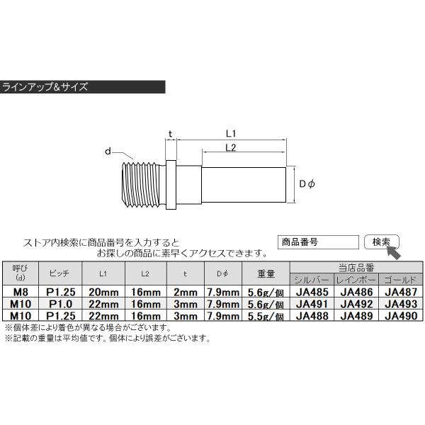 Vブレーキ マウント ボルト M10 P1.25 カンチブレーキ ピボットボルト ゴールド 自転車 2個セットJA490