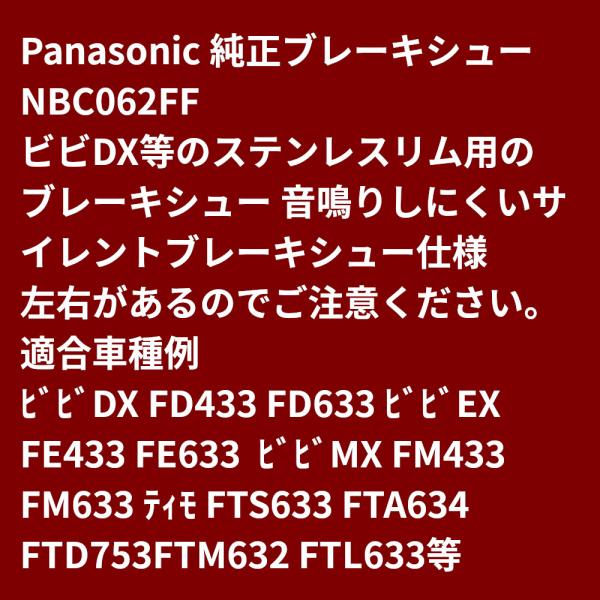電動アシスト自転車 ブレーキシュー パナソニック ビビ・DX 等 純正品 NBC062FF 1P ステンレスリム用 サイレントブレーキシュー(ゆ)さ
