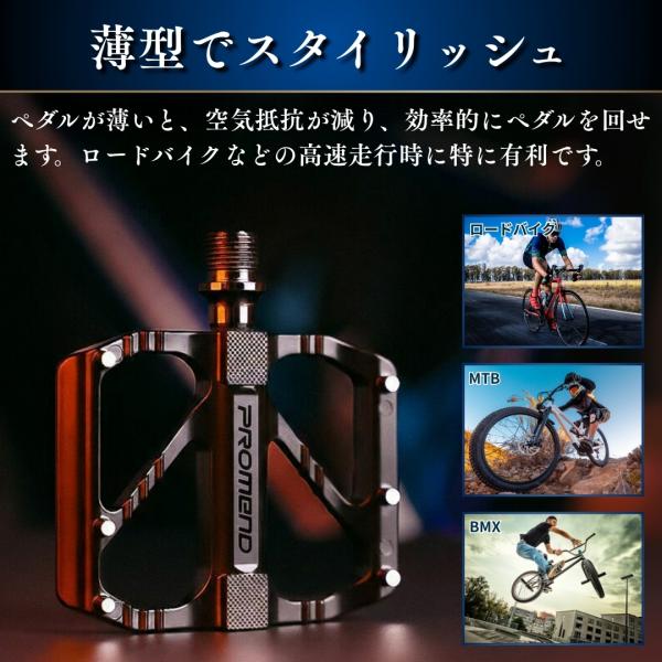 フラットペダル 軽量 交換 薄型 スポーティー 自転車ペダル コンパクト サイクリング アルミ合金 ロードバイク クロスバイク マウンテンバイク ロックブロス