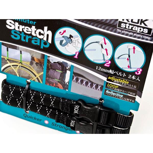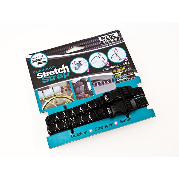 ROK straps ストレッチストラップ CM ブラック リフレクティブ ストラップ長:300mm〜720mm/幅:12mm 2本セット 米国製