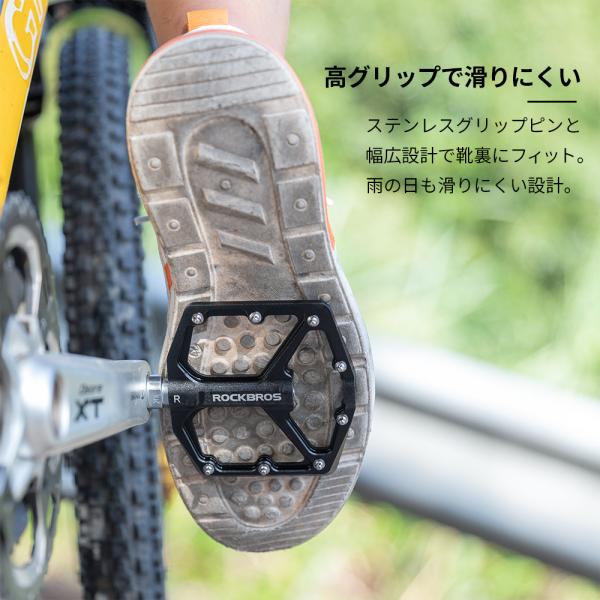 自転車 ペダル フラット 9/16インチ 交換 幅広 踏みやすい 両面16本 スパイクピン 軽量 防水 クロスバイク ミニベロ ロックブロス