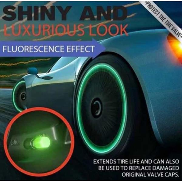 蓄光エアバルブキャップ 車 バイク タイヤ 蛍光 カラー 夜光 エア バルブキャップ 4個セット