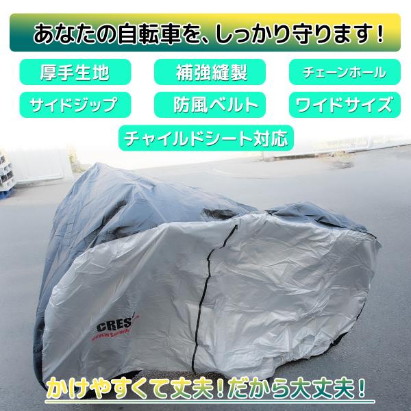 やぶれにくいかご付き自転車カバーファスナー付盗難防止 防水 サイクルカバー 厚手 保管用 レインカバー 撥水 鍵穴 ロック穴 UV加工 収納袋付き