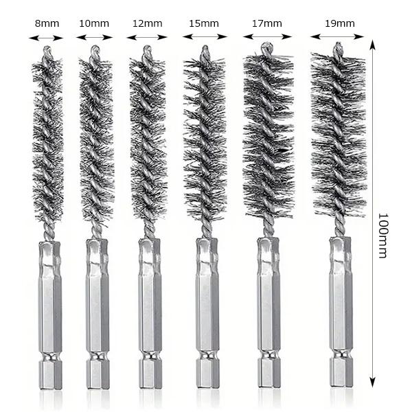 錆取り用ステンレス鋼ボアブラシ(ワイヤーブラシ)6本セット T277