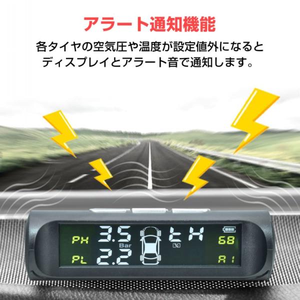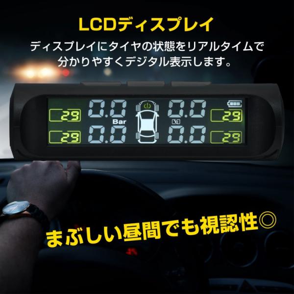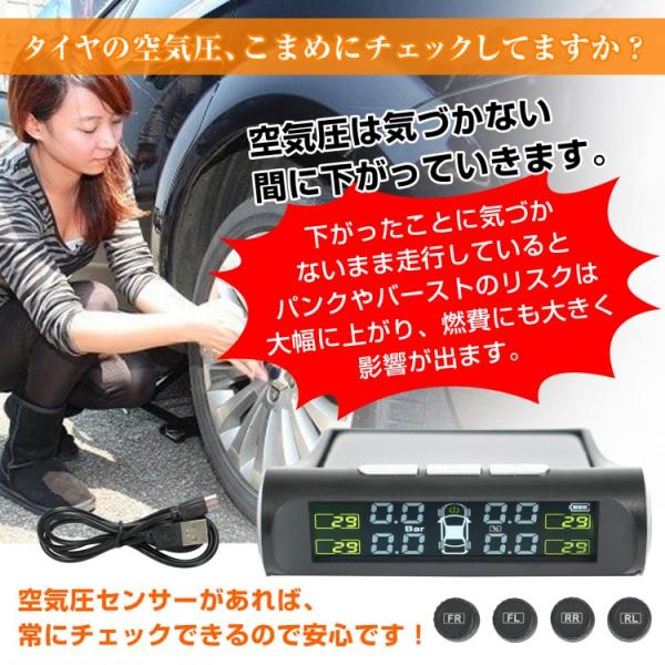 空気圧センサー タイヤ 空気圧 モニタリング センサー チェック 測定 計測 ソーラー USB ワイヤレス LCD ディスプレイ 無線 温度 監視 アラーム ee209