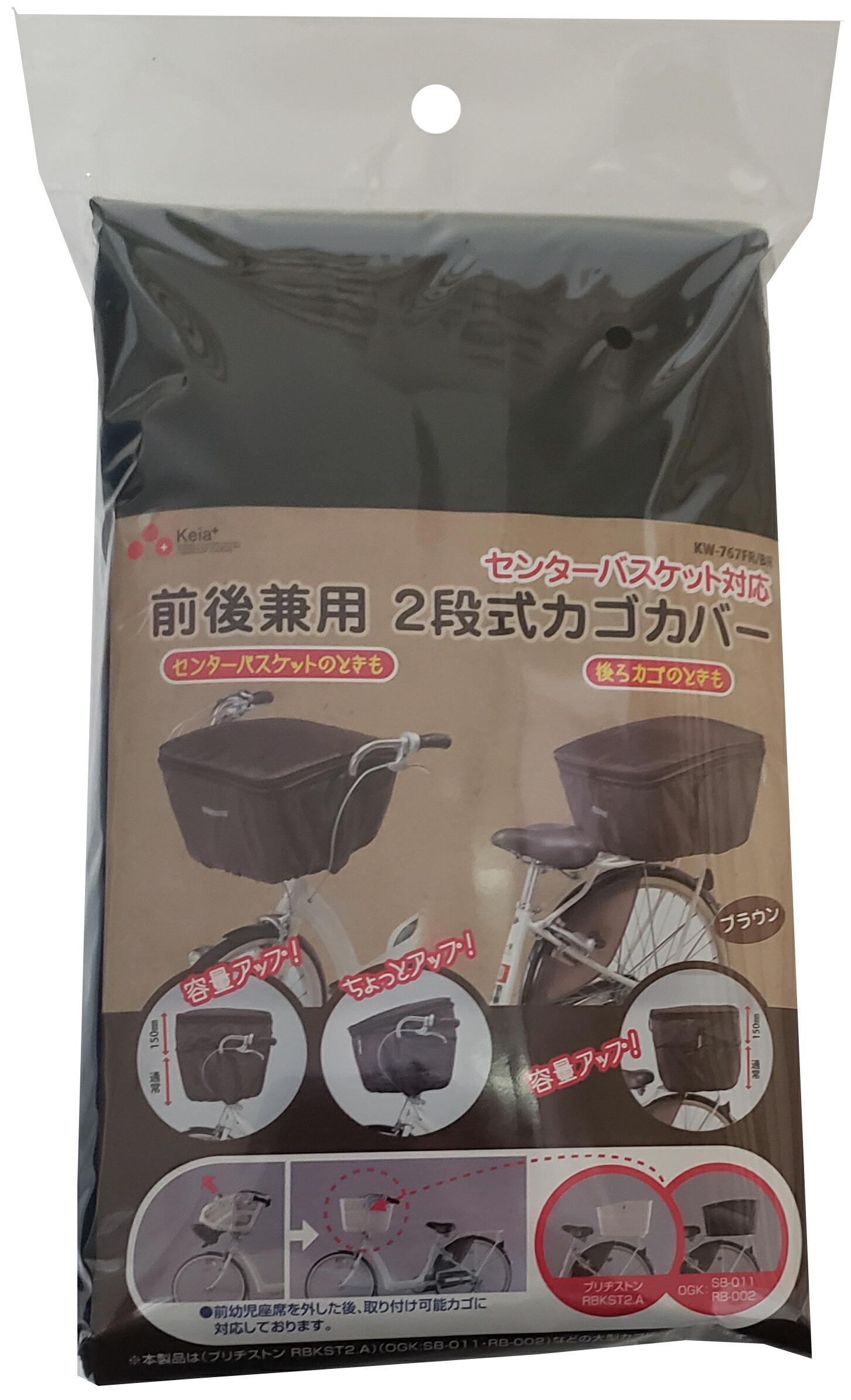 川住製作所 自転車 カゴカバー 前後兼用 2段式 ブラウン バスケット シティサイクル フロント リア
