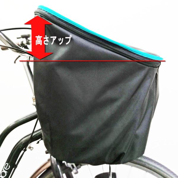 自転車 前かごカバー ワイド&HIGH(大) HIRO (ヒロ) 日本製 強撥水 テフォックス生地(テフロン加工)ブラックベース 広く 高さ 容量アップ!!