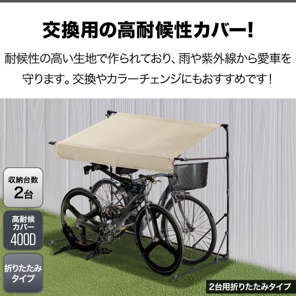 FIELDOOR サイクルパーキング 折りたたみタイプ 専用カバー 2台用/奥行106cmタイプ 高耐候性 400D生地 自転車置き場 屋根 交換用カバー 1年保証 送料無料