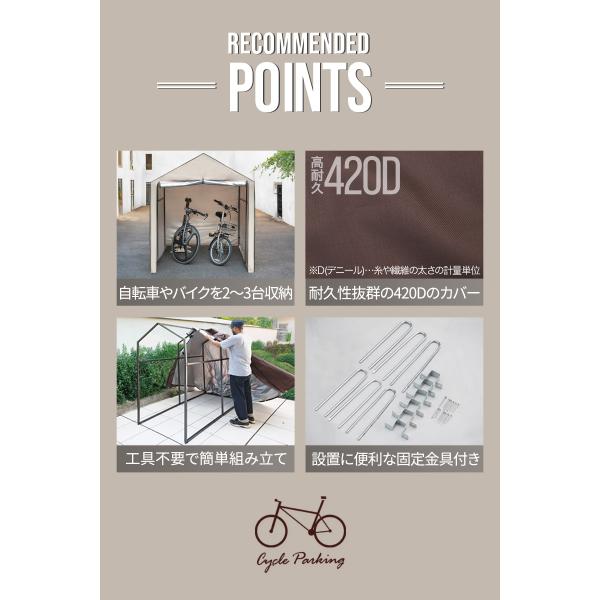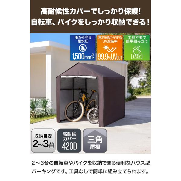 自転車置き場 サイクルポート 家庭用 2台〜3台用 大型 UVカット 耐候 防水 耐水 420D カバー 雨よけ 駐輪場 自転車 収納庫 屋根 バイク 送料無料