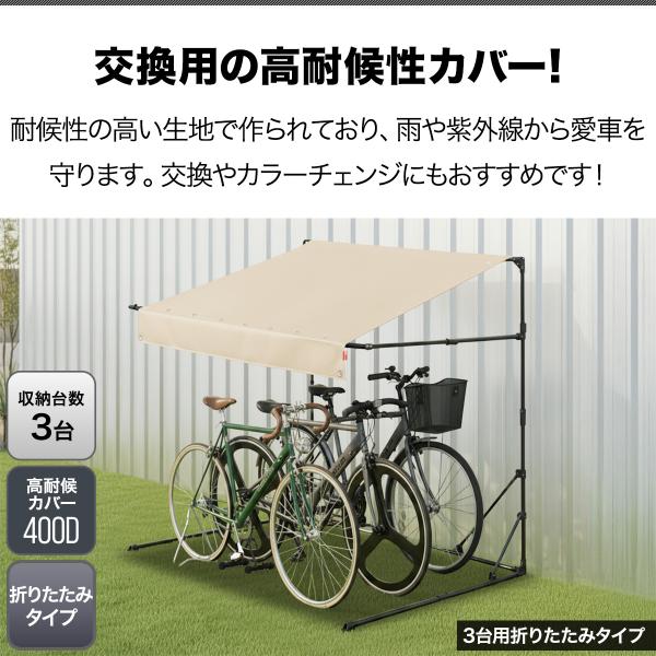 FIELDOOR サイクルパーキング 折りたたみタイプ 専用カバー 3台用/奥行134cmタイプ 高耐候性 400D生地 自転車置き場 屋根 交換用カバー 1年保証 送料無料